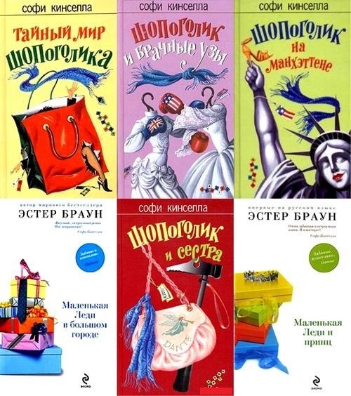 Шопоголик - серия веселых, забавных, легких 16 книжек. Включает в себя уже знаменитый одноименный цикл Софи Кинселлы, трилогию Эстер Браун Рекомендуется для поднятия настроения. Все женщины делают это — ходят по магазинам и покупают, покупают, покупают… Некоторые, особо сильные духом дамы, могут вовремя схватить себя за шкирку и вытащить из торговой точки. Но есть и другие — те, что способны провести в магазинах всю свою жизнь (и надо заметить, очень счастливую жизнь). Подобные особы являются законченными шопоголиками.