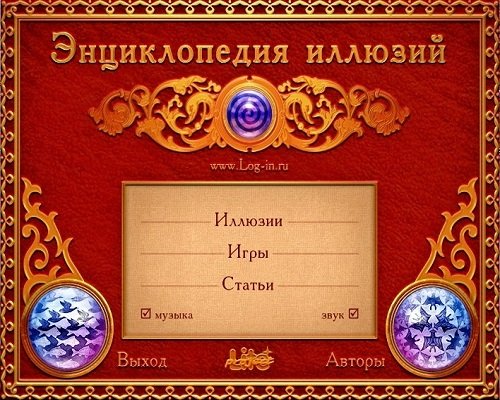 Удобная, интуитивно понятная оболочка, приятная фоновая музыка, возможность выбрать вариант просмотра, который будет подходить именно Вам, способствуют максимально комфортному ознакомлению с "Энциклопедией иллюзий".